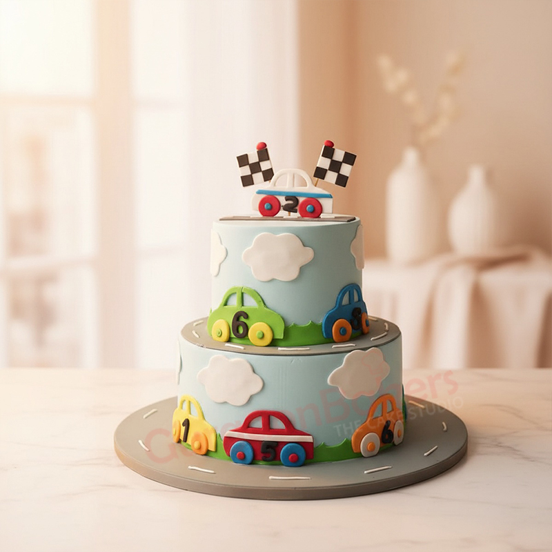Looking for a car theme cake for kids? You’ve come to the right place! Our delightful cake is designed to spark joy and excitement at any birthday celebration. Featuring colorful cars, playful clouds, and racing flags, this cake will be the highlight of your little one’s special day.