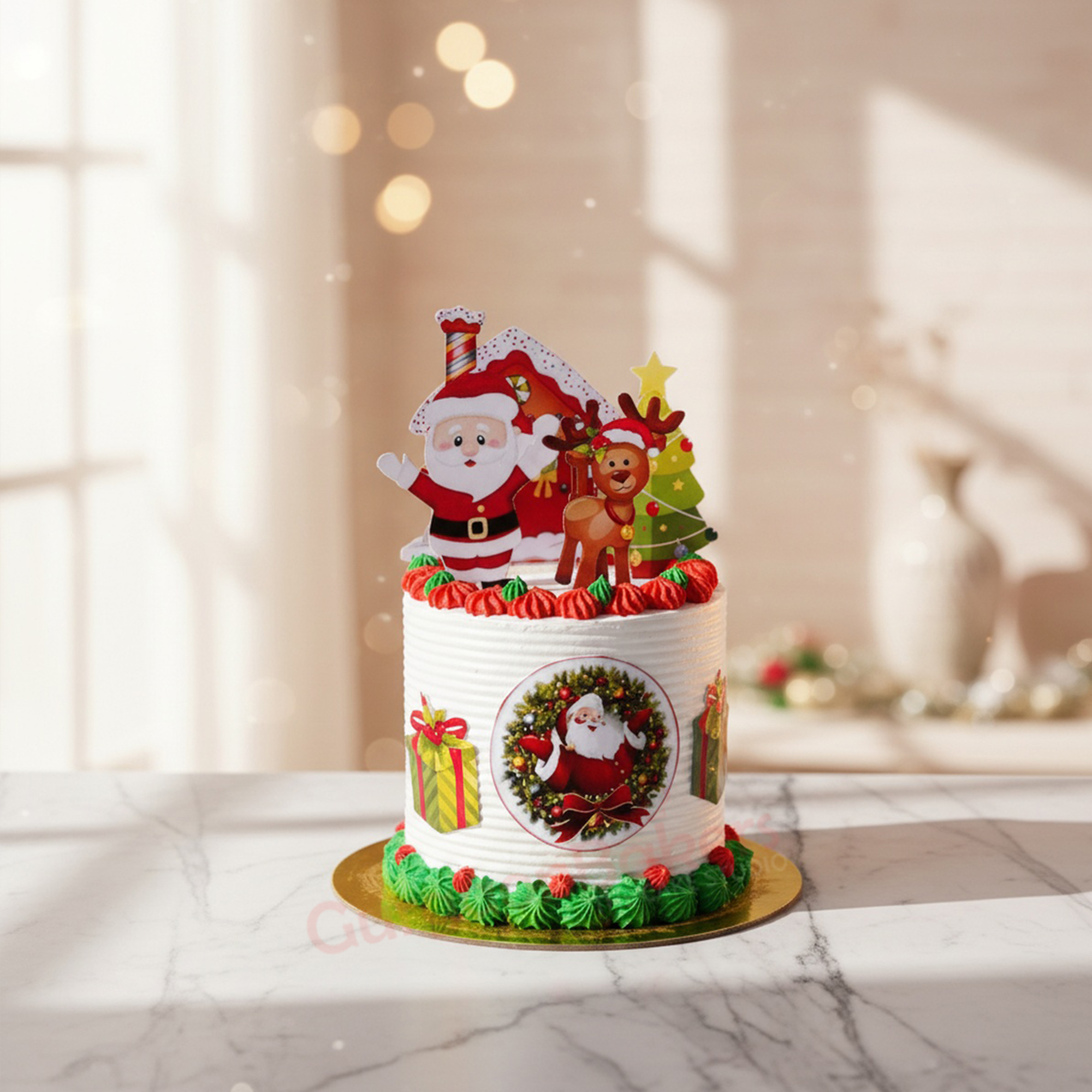 Searching for a Christmas cake shop near me? Look no further! At Gurgaon Bakers, our Festive Santa Christmas Cake is designed to bring joy to your holiday celebrations. This delightful cake, adorned with charming decorations of Santa and his reindeer, lifts the festive spirit and fills your home with warmth and nostalgia.